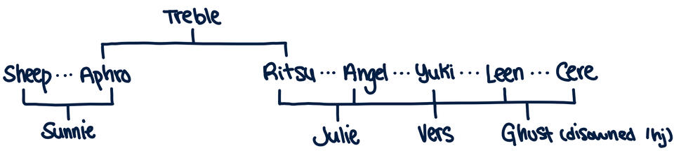 Members of Emo Gang and Honorary members may also be part of the family tree; for clarity purposes they have not been included on this page